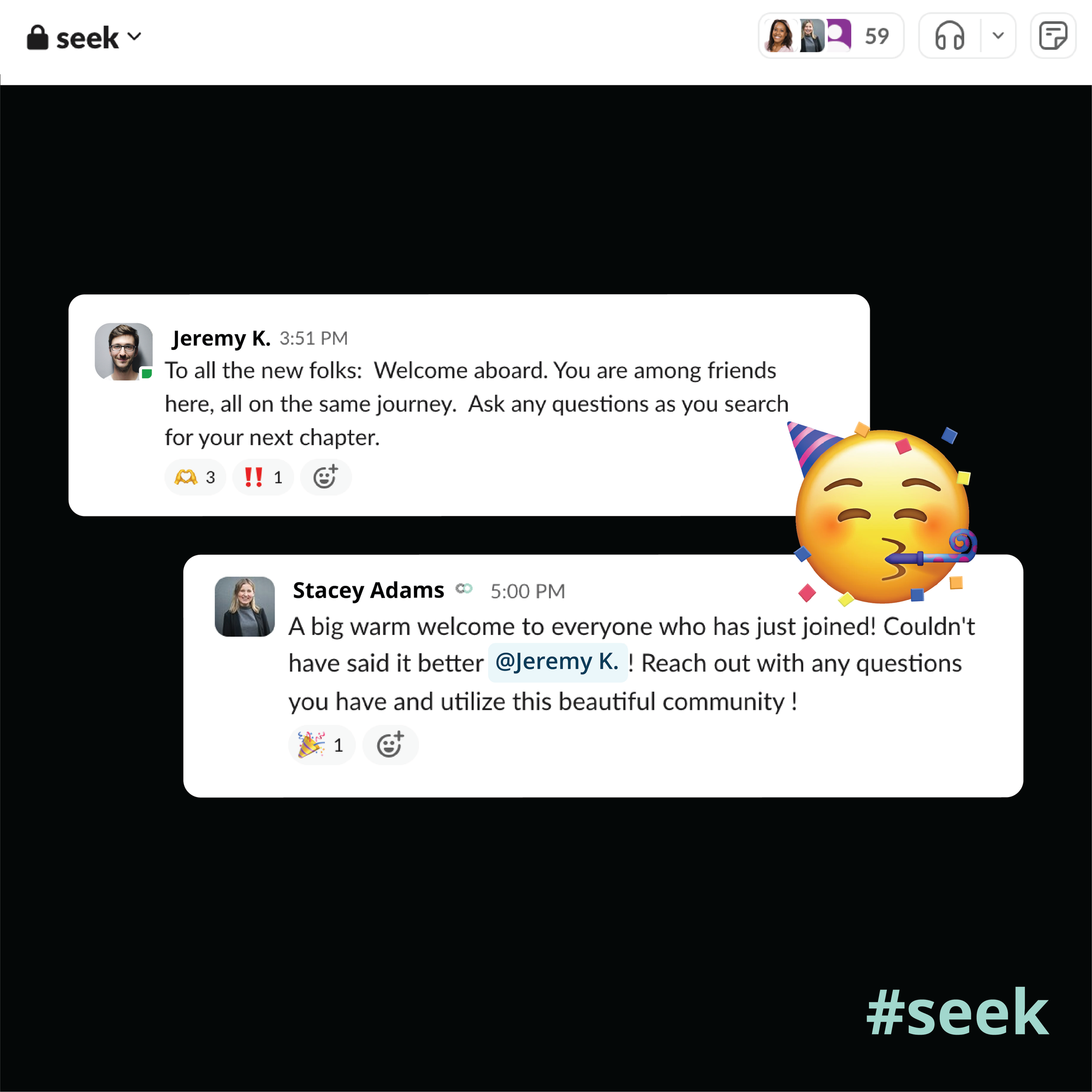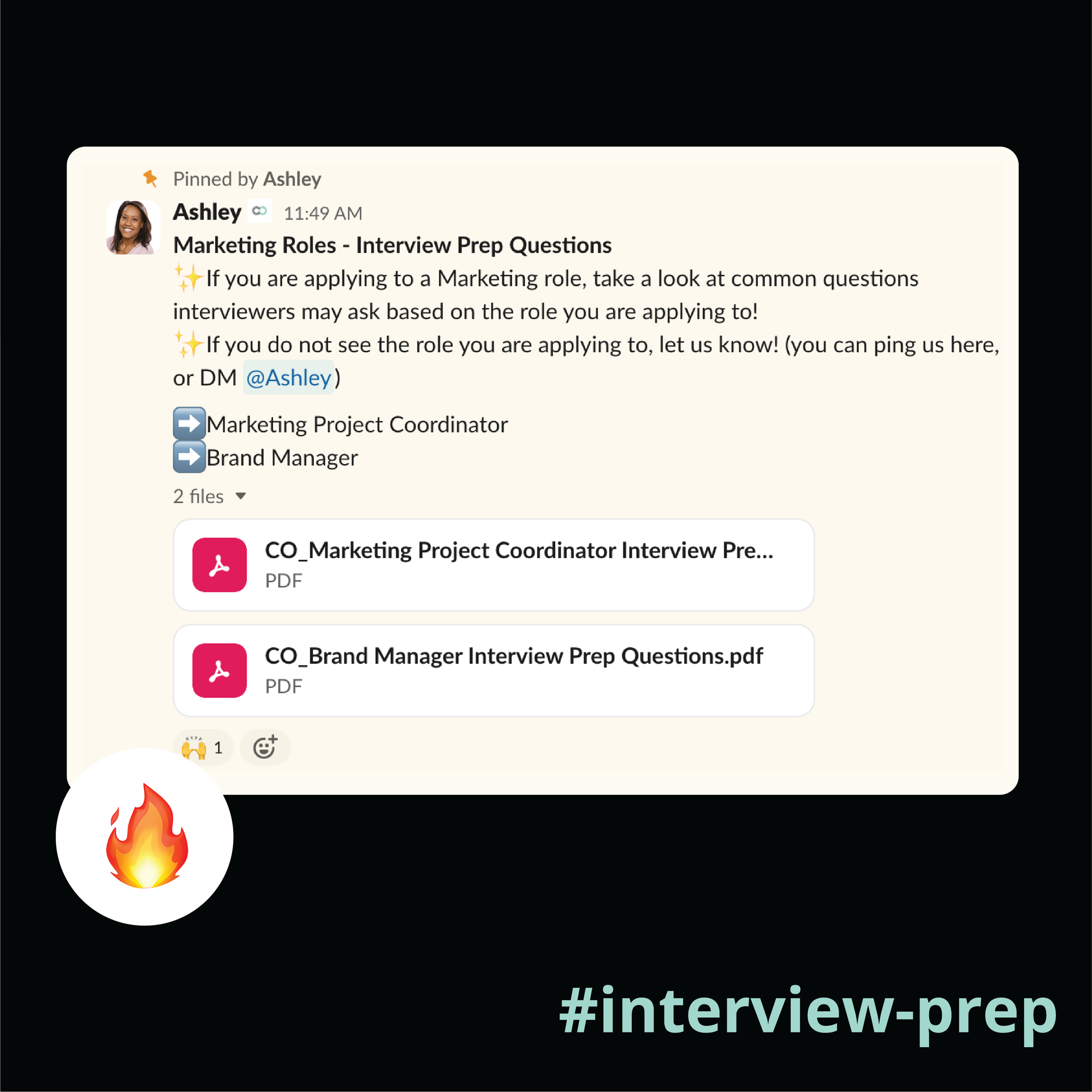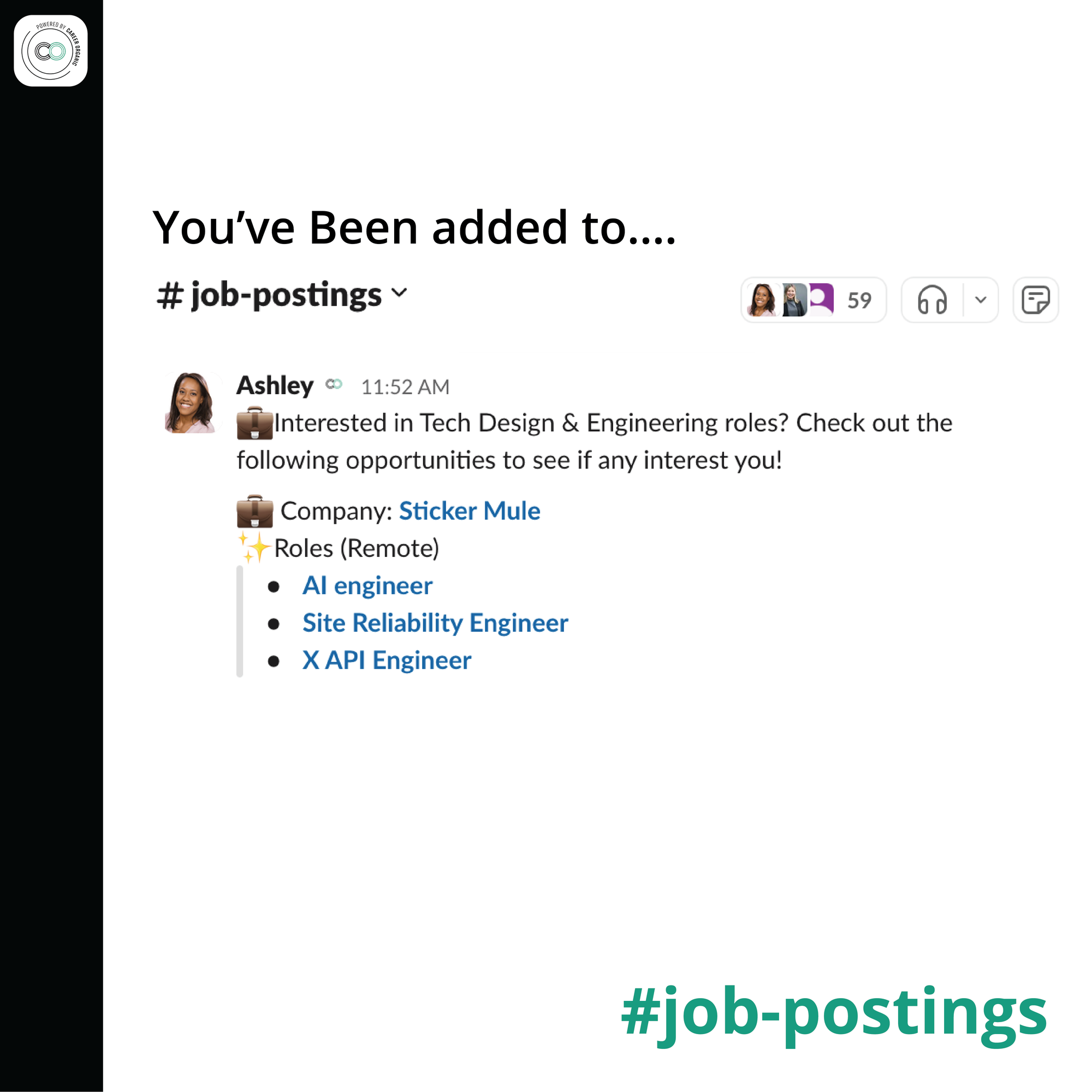 Once you receive and accept your job offer, you can move to our growth channel to continue receiving support as you grow into your new role.